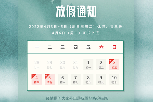 2022年清明放假通知